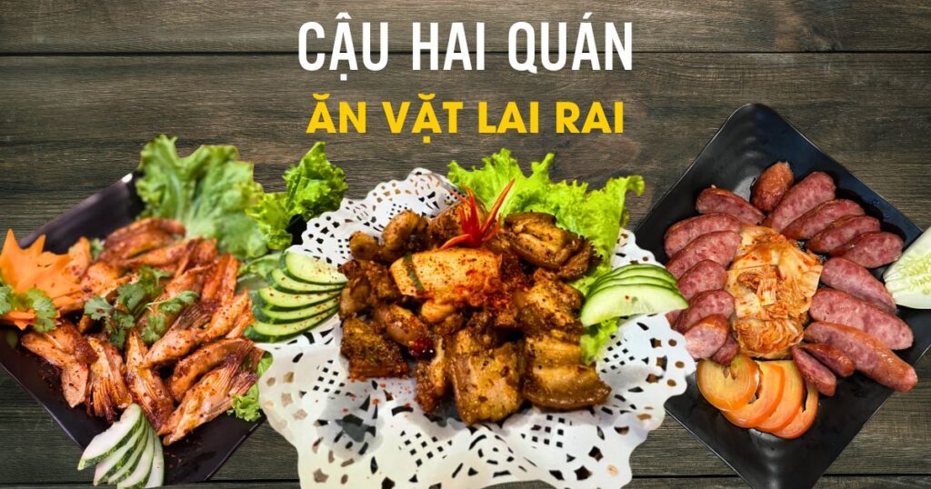 Cậu Hai Quán là điểm đến lý tưởng cho những bữa tiệc ấm cúng bên bạn bè, đồng nghiệp và gia đình. Với không gian thân mật và riêng tư, quán không chỉ mang đến sự thoải mái mà còn chinh phục thực khách với thực đơn món ăn tinh tế. Nổi bật là các món như Lườn cá hồi nướng muối ớt, Thịt ba chỉ nướng muối sả, Chân gà sả tắc, và Gà ủ muối. Thực đơn còn được điểm xuyết bằng những tên gọi hài hước và thú vị, tạo nên một trải nghiệm ẩm thực mới mẻ và vui vẻ cho khách hàng.